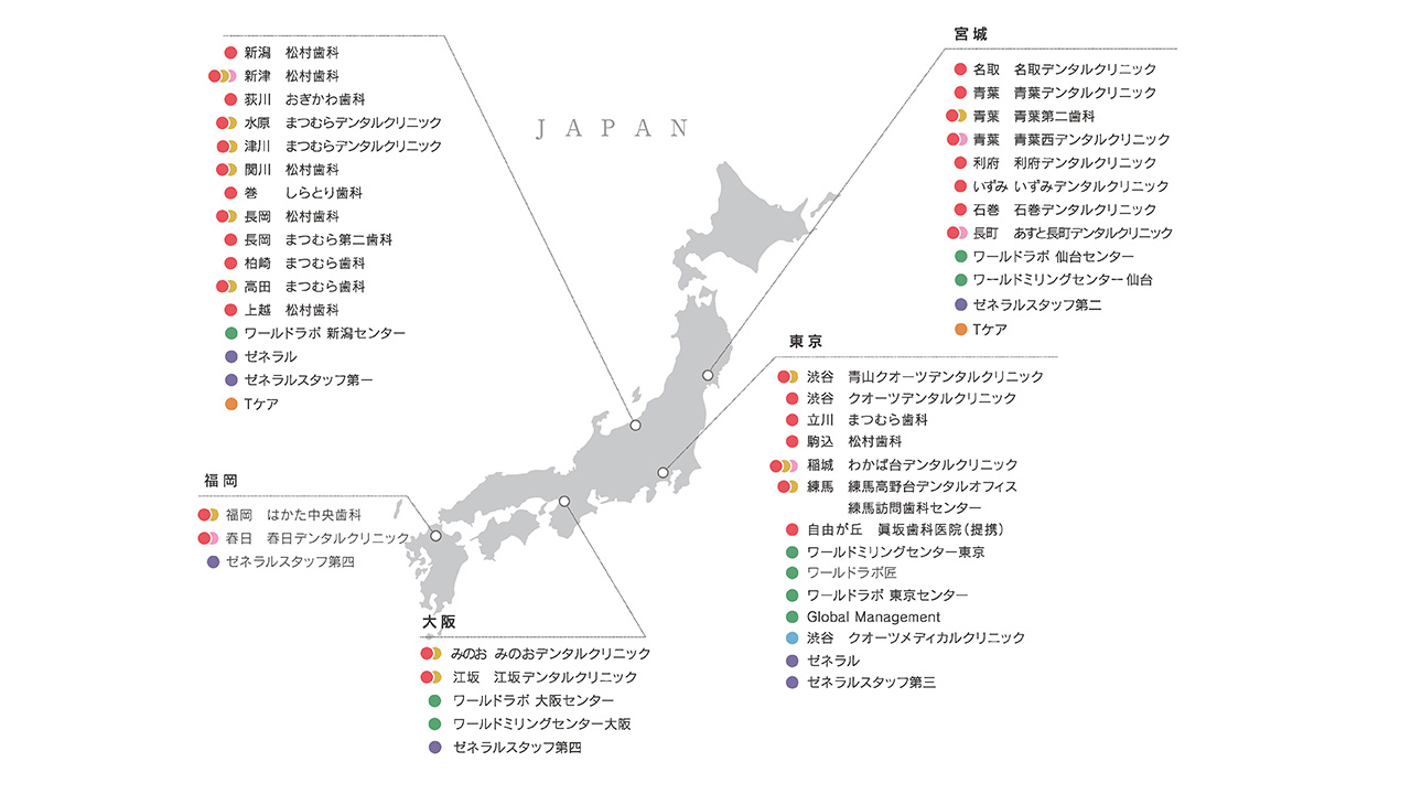 国内では、全国の歯科の患者さま総数の約0.3%に相当する、年間約70万人の患者さまの治療に携わる日本最大級の歯科医療グループになっております。